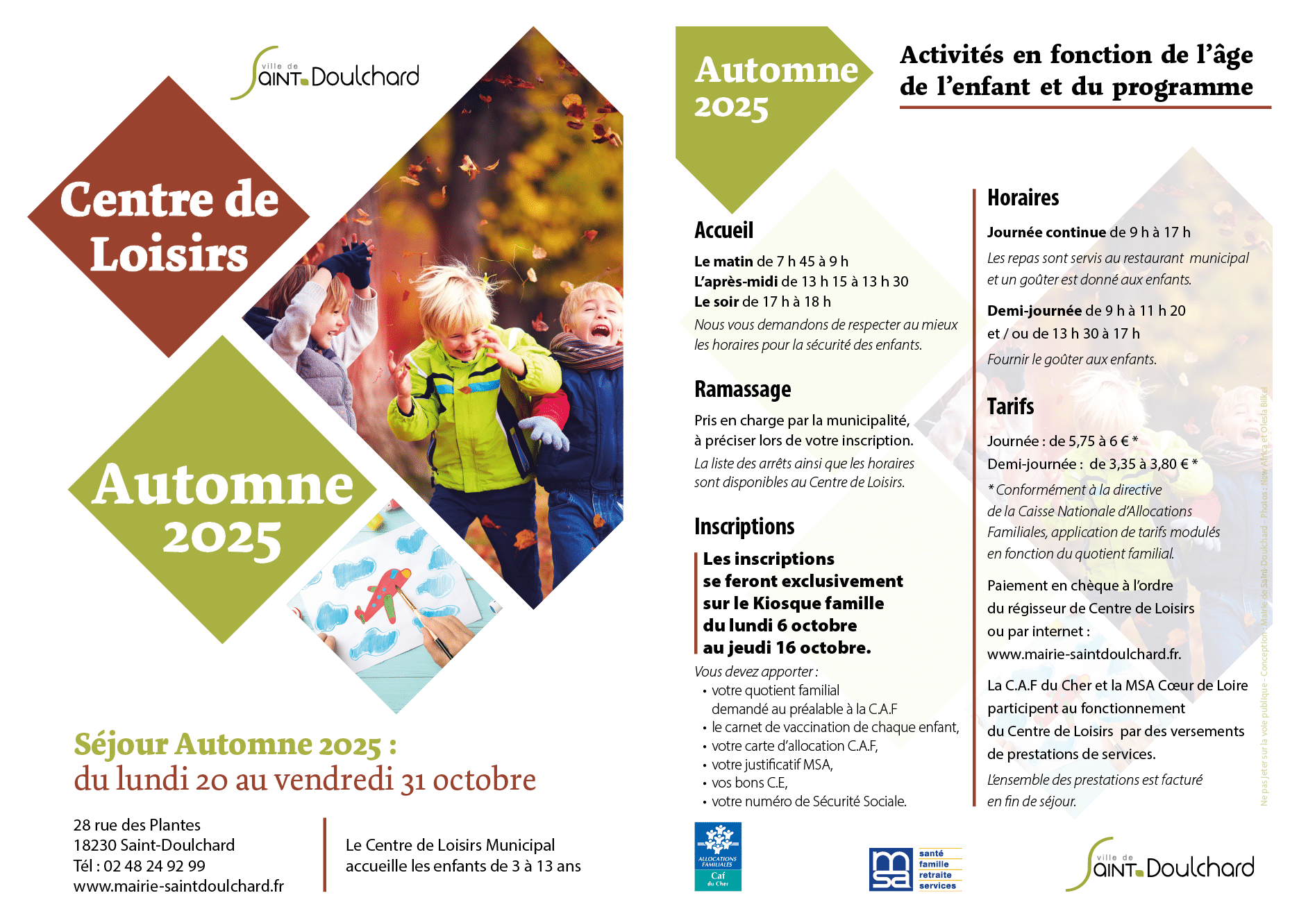 Au Centre de loisirs : Renseignements au 02 48 24 92 99